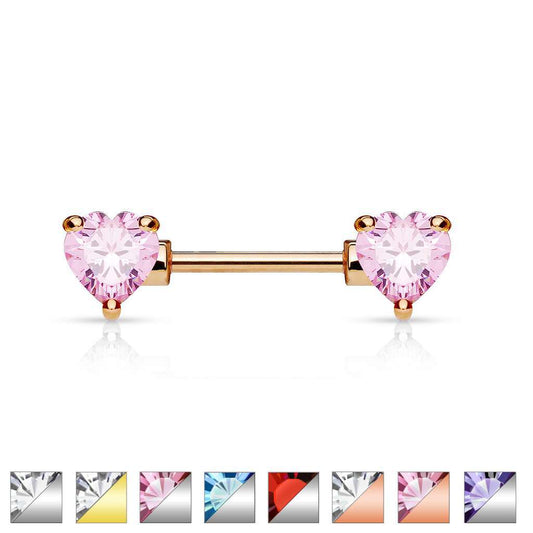 Claw-Set Lovely Heart Crystal Nipple Barbell 14g