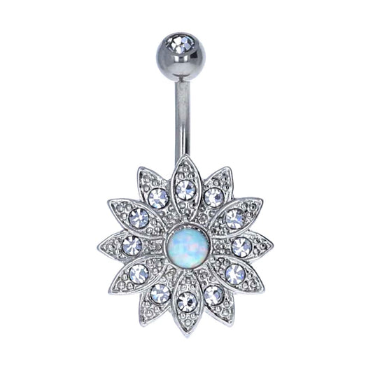 Crystal + Opal Flower Navel Barbell 14g