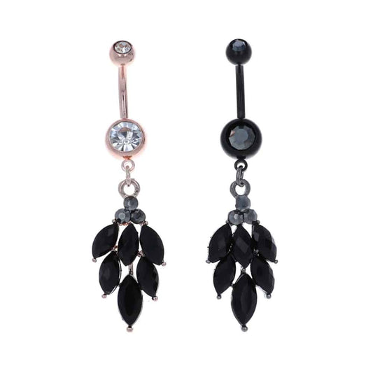 Black Crystal Leaves Navel Dangle 14g