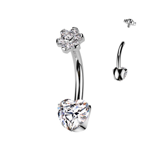 Premium G23 Titanium Heart & Blossom Claw-Set Crystal Navel Barbell 14g