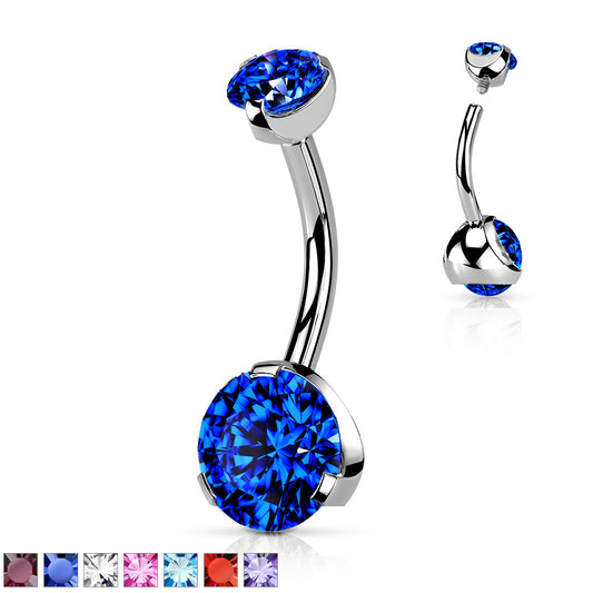 Premium G23 Titanium Bezel + Claw-Set Crystal Navel Barbell 14g