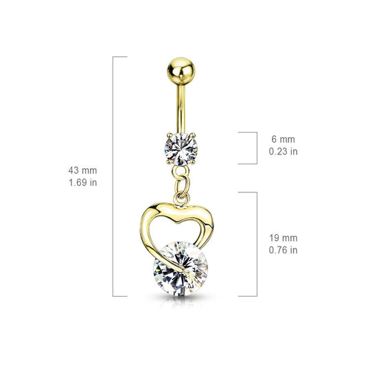Premium G23 Titanium Heart Crystal Navel Barbell 14g