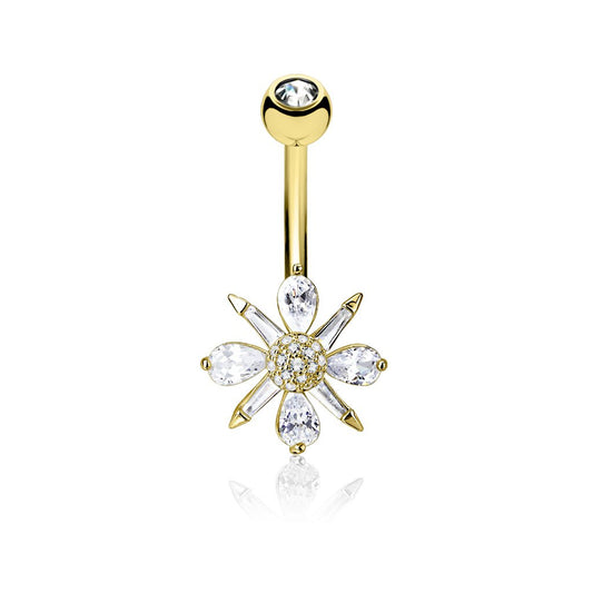 Premium G23 Titanium Dotwork Crystal Navel Barbell 14g