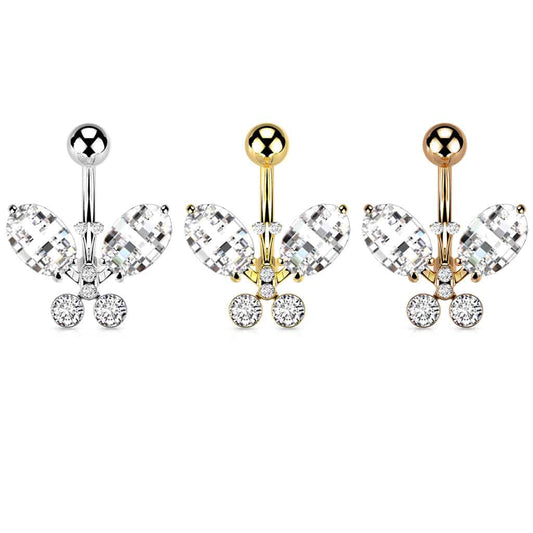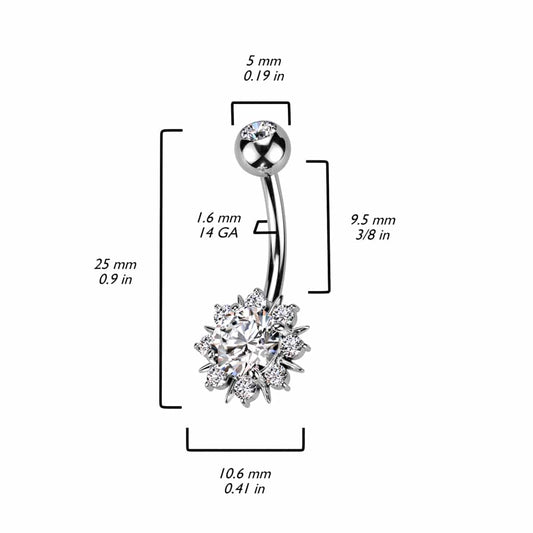 Premium Titanium Bezel-set Crystal Navel Barbell 14g