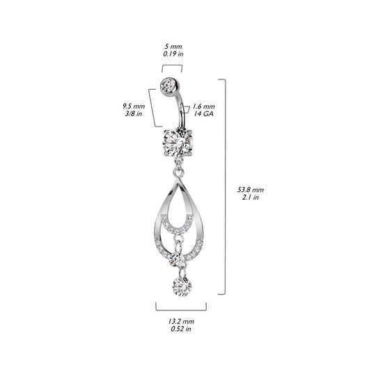 Premium G23 Titanium Pear Crystal Navel Barbell 14g