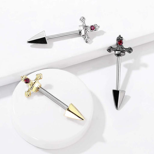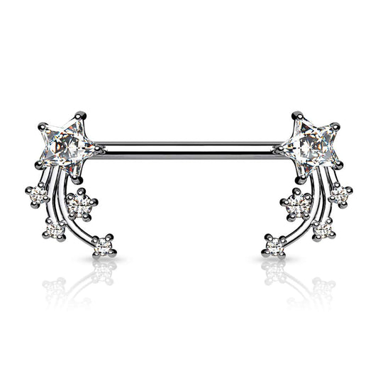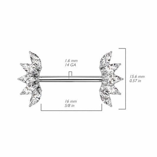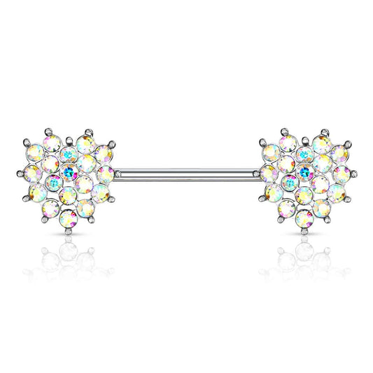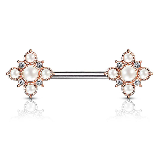 4 Point Pearl + Crystal Nipple Barbell 14g