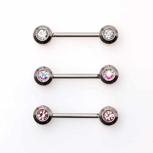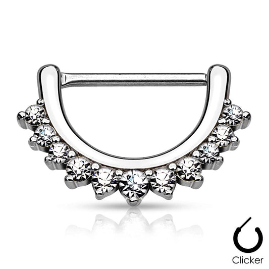 Surgical Steel + 6 Crystal Nipple Clicker 14g
