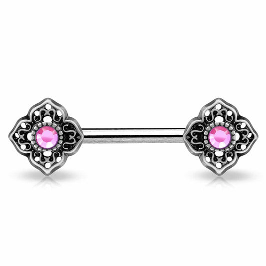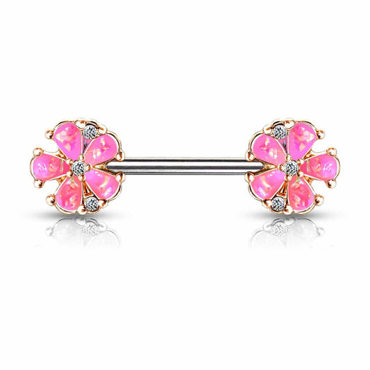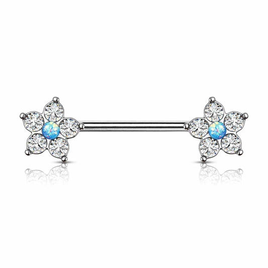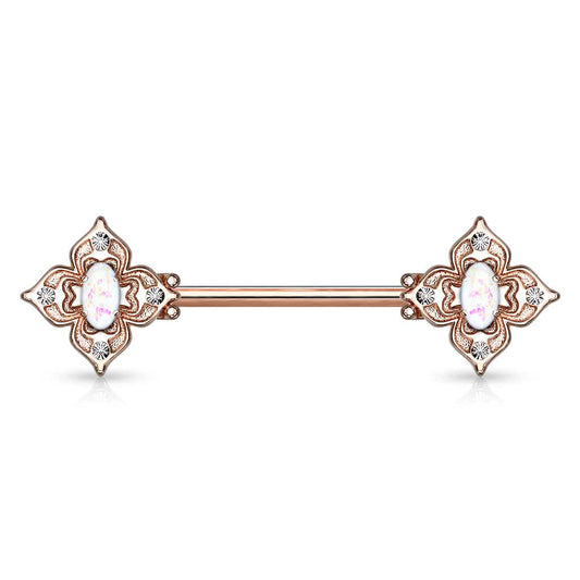 4 Point Filigree Oval Opal Nipple Barbell 14g