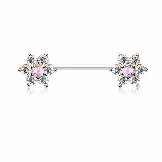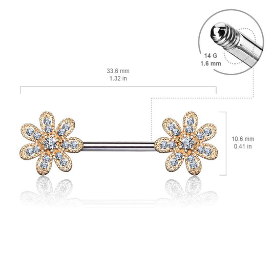 Rose Gold Flared Filigree Nipple Barbell 14g