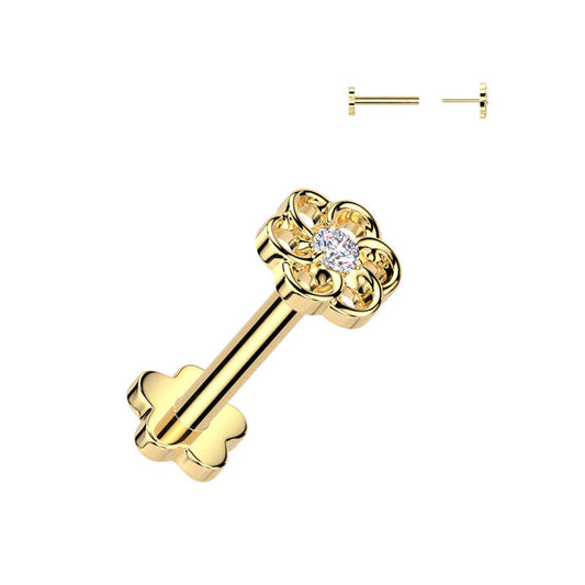 Premium G23 Titanium Flower Filigree Threadless Flat Back