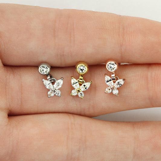 Premium G23 Titanium Lotus Outline Crystal Dangle Threadless Top