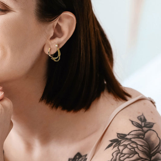 Premium Surgical Steel Bezel-Set Crystal Ball Back + Chain Earrings