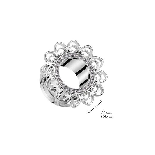 Heart Filigree with Crystals Tunnels 2g - 1"