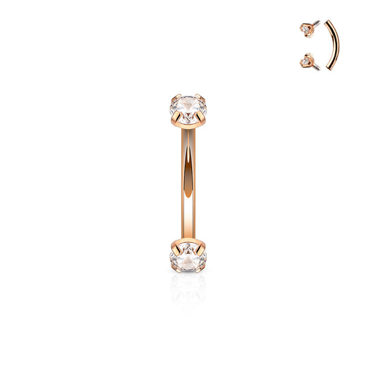 Premium Claw-Set Double Round Crystal Curved Barbell 16g