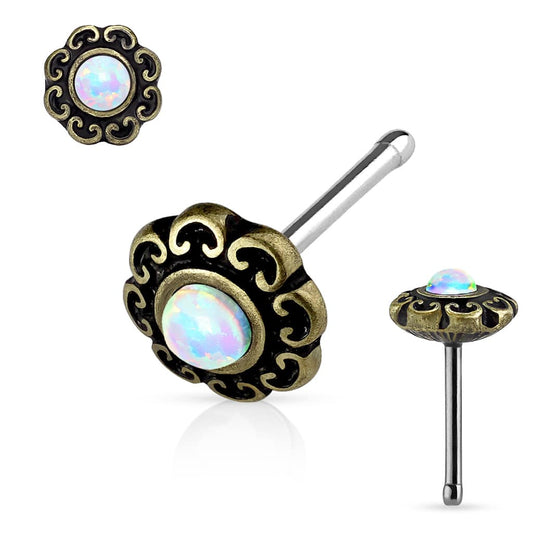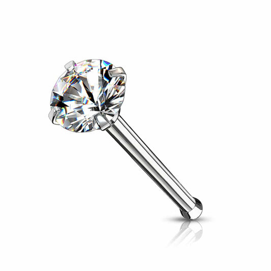 14K Gold Claw-Set Crystal Nose Bone 20g