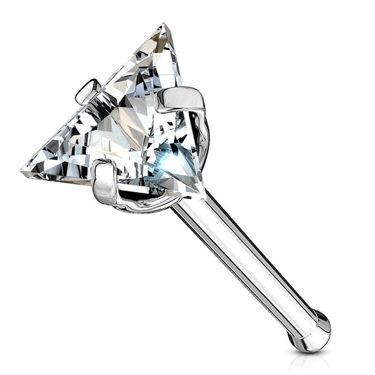 Premium Claw-Set Triangle Crystal Nose Bone 18g