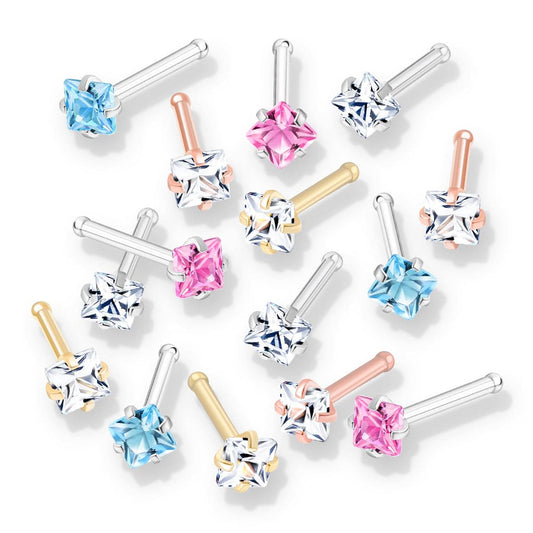 Premium Claw-Set Square Crystal Nose Bone 18g