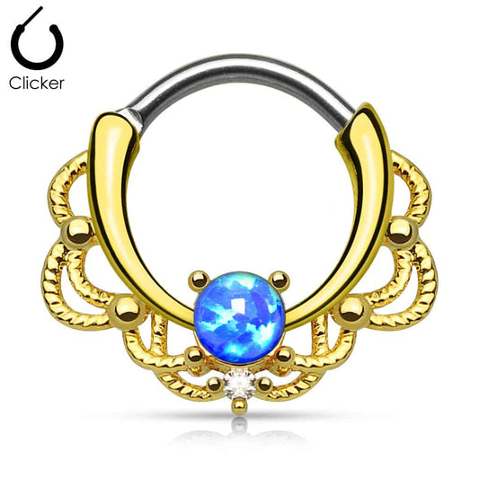 Gold PVD Filigree Claw-Set Opal Clicker 16g