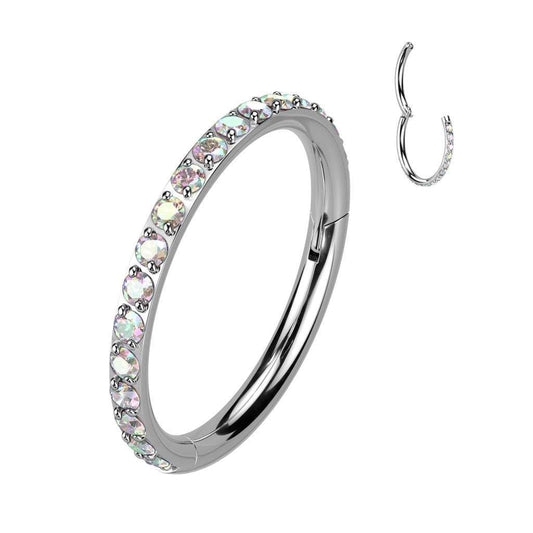 PREMIUM Patterned Crystal Hinged Segment Ring 16g