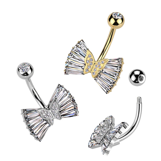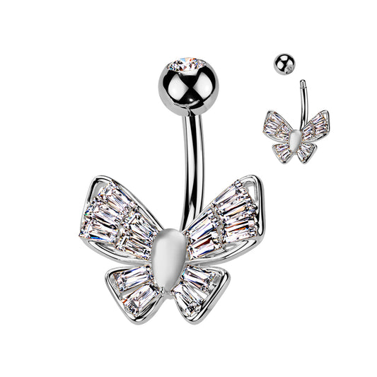 Square Wing Butterfly Crystal Navel Barbell 14g