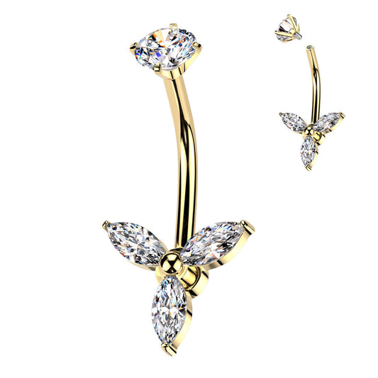 Triple Marquise Crystal Navel Barbell 14g