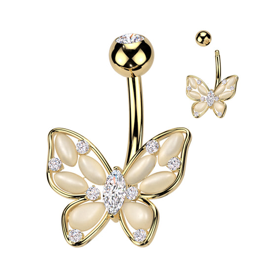 Pebbled Crystal Butterfly Navel Dangle 14g
