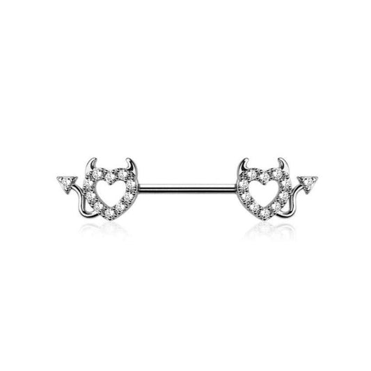 Devil Heart Crystal Channel-Set Nipple Barbell 14g