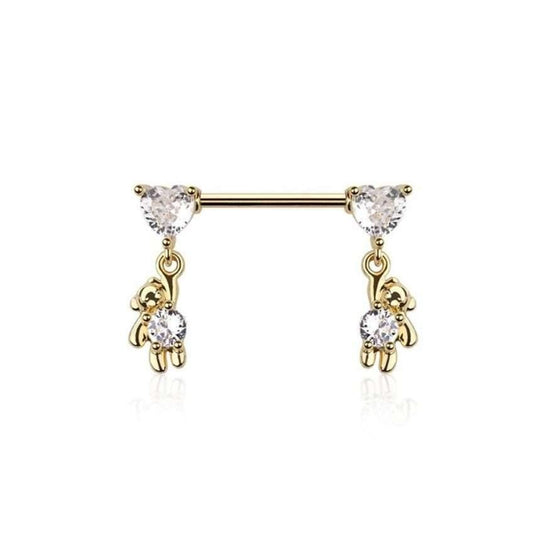 Claw-Set Lovely Heart Crystal Nipple Barbell 14g