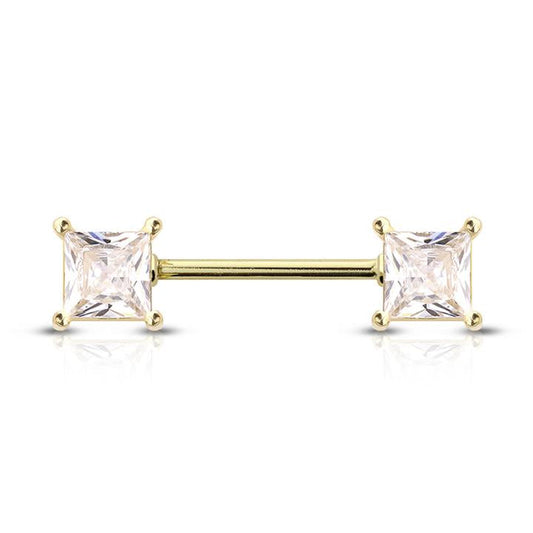 Claw-Set Princess Cut Crystal Nipple Barbell 14g