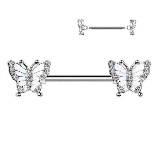 Embellished Crystal Angel Wings Nipple Barbell 14g