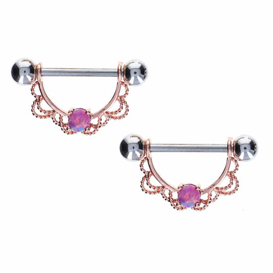 Filigree + Pink Opal Nipple Shield 14g