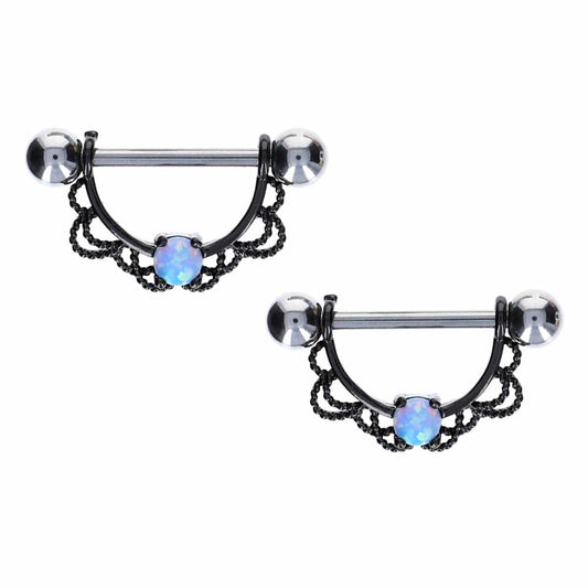 Filigree + Bold Blue Opal Nipple Shield 14g