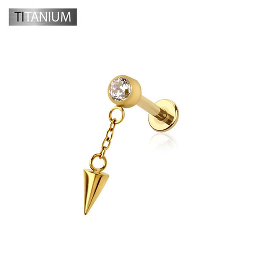 Premium G23 Titanium Spike Cone Dangle Threadless Flat Back