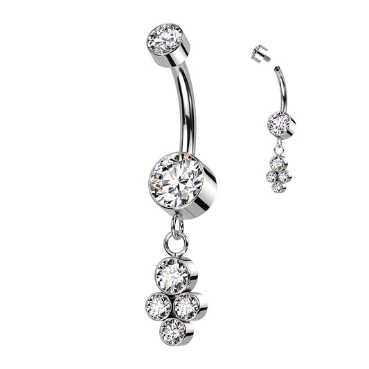 Premium G23 Titanium Bezel-Set Crystal Quad Cluster Navel Dangle 14g