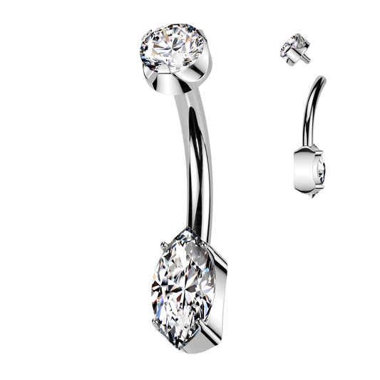 Premium G23 Titanium Marquise Claw-Set Crystal Navel Barbell 14g