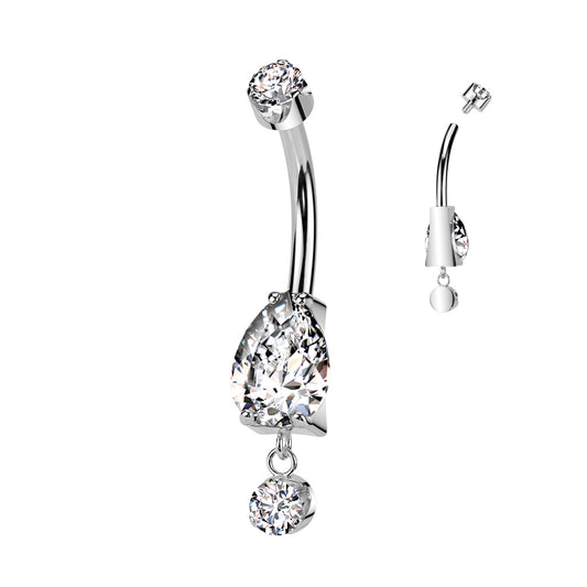 Premium G23 Titanium Crystal Tear Drop Navel Barbell 14g