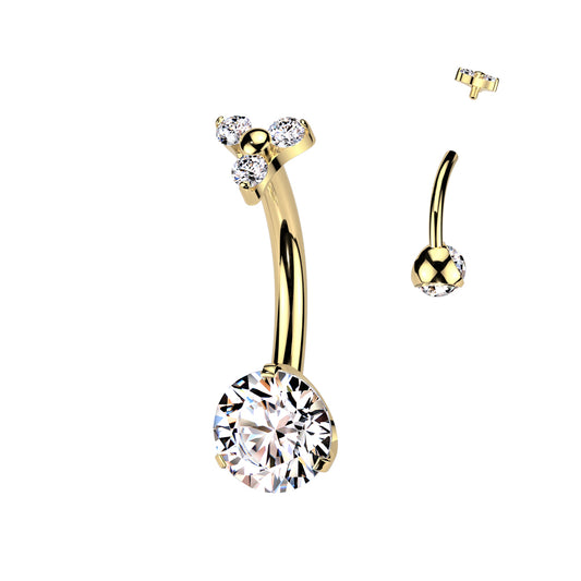 Premium G23 Titanium Trio Claw-Set Crystal Navel Barbell 14g