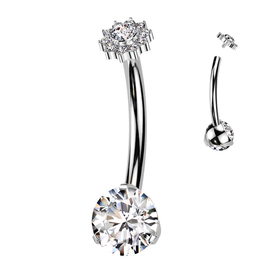 Premium G23 Titanium Claw-Set Crystal Flower Navel Barbell 14g