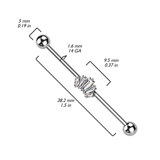 Crystal Sunburst Flower Fancy Industrial Barbell 14g