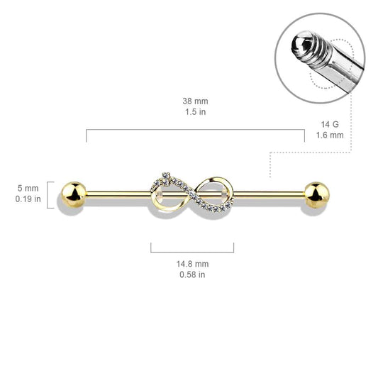 Crystal Infinity Sign Fancy Industrial Barbell 14g