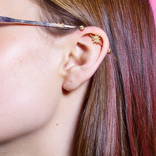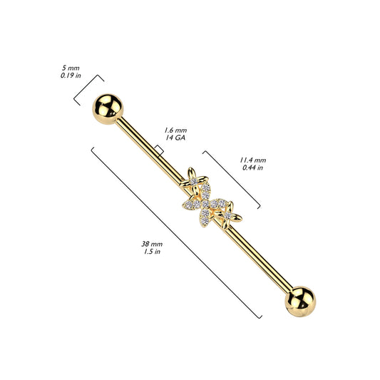 Premium Bezel-set Flower Chain Industrial Barbell 14g