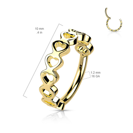 Premium Alternating Hearts Hinged Segment Ring 16g