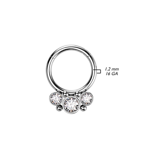 Premium Triple Dotwork + Crystal Segment Ring 16g