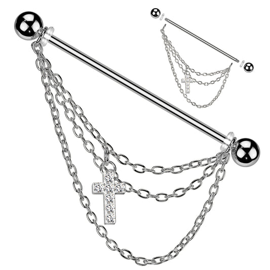 Premium Cross Chain Dangle Industrial Barbell 14g