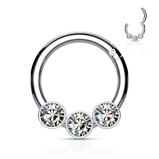Premium 3 Bezel-Set Crystal Segment Ring 16g