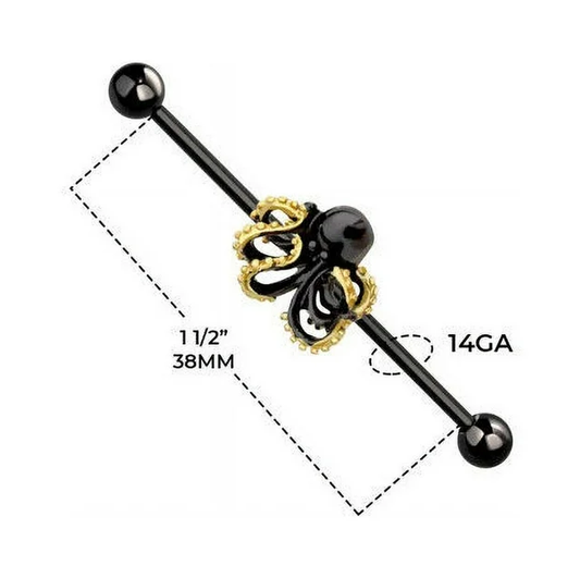 Premium Coiled Octopus Tentacle Industrial Barbell 14g