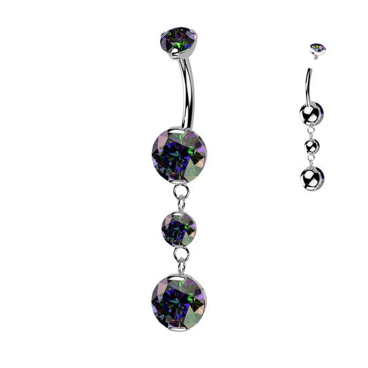 Premium G23 Titanium Round Crystal Chain Navel Dangle 14g