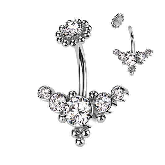 Premium G23 Titanium Bezel-Set Crystal Cluster Navel Dangle 14g