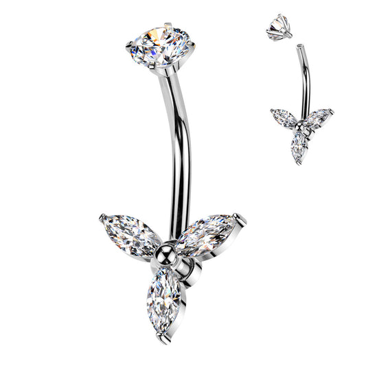 Premium Triple Marquise Crystal Navel Barbell 14g