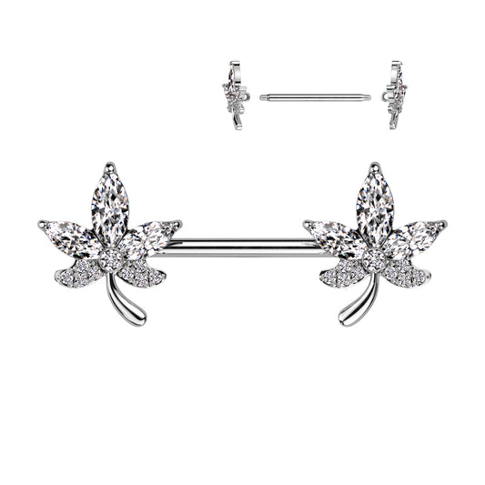 Four-Leaf Clover Crystal Nipple Barbell 14g